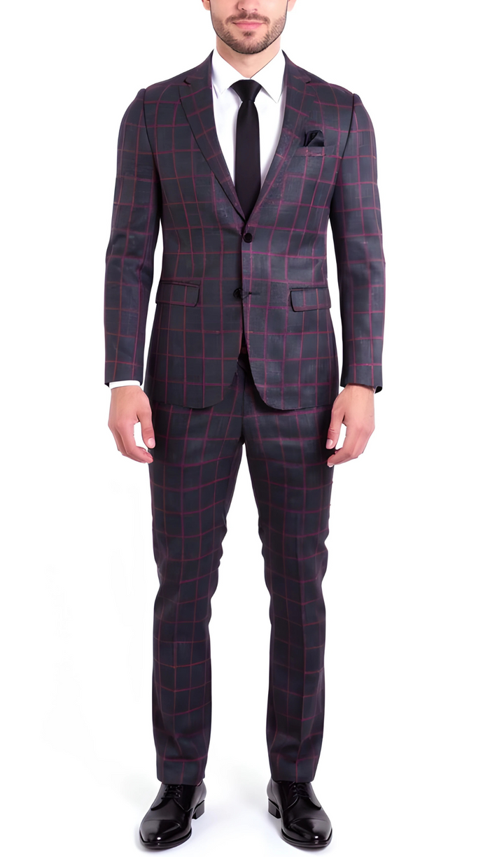 THE WINDSOR CHECK MENS 2 BUTTON SLIM FIT SUIT