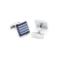 Silvertone Blue Stripe Cuff Links With Jewelry Box