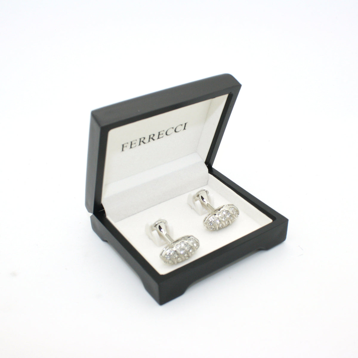 Silvertone Oval Crystal Gemstone Cuff Links With Jewelry Box